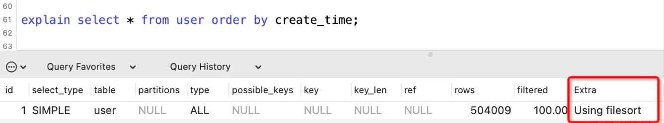 Using filesort