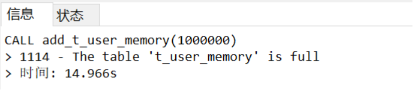 解决方法:在my.cnf中修改max_heap_table_size = 256M tmp_table_size = 256M,重启MySQL服务(my.cnf在mysql安装路径),如果还不够用根据自己电脑自行修改。如果是线上服务器,最好不要自行修改,还是跟运维多沟通沟通,避免出现问题。