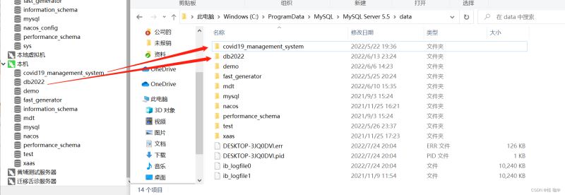 根据查询的位置打开,然后会发现每个数据库就是一个文件夹