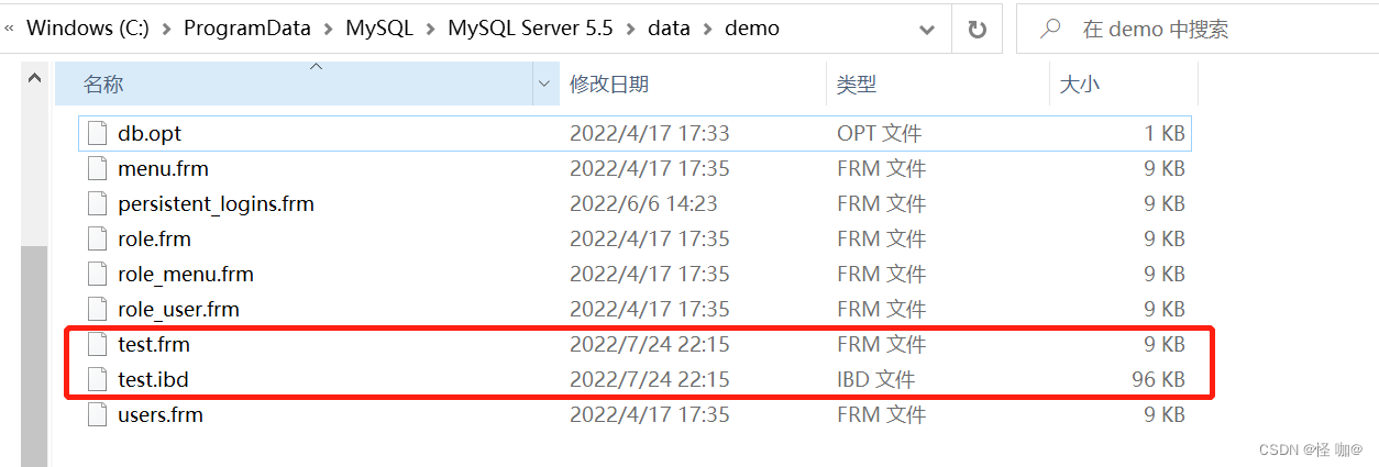 正常innodb引擎存储表的时候会有两个文件,一个是frm文件,一个是ibd文件。