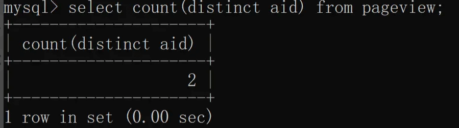 使用 distinct + 聚合函数去重,计算 aid 去重之后的总条数,具体实现如下: