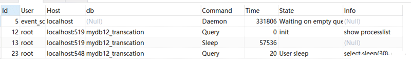 - 4) db列,显示这个进程目前连接的是哪个数据库