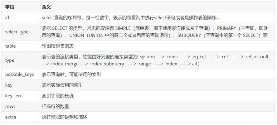 id 字段是 select查询的序列号,是一组数字,表示的是查询中执行select子句或者是操作表的顺序。id 情况有三种: