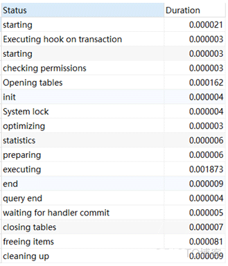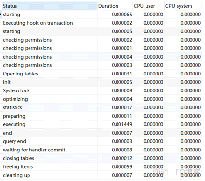 通过show profile for query query_id 语句可以查看到该SQL执行过程中每个线程的状态和消耗的时间: