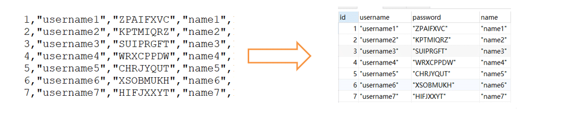 -- 关闭唯一性校验 SET UNIQUE_CHECKS=0; truncate table tb_user; load data local infile 'D:\\sql_data\\sql1.log' into table tb_user fields terminated by ',' lines terminated by '\n'; SET UNIQUE_CHECKS=1;