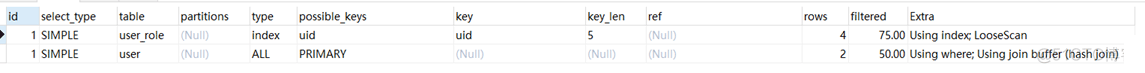 explain select * from user u , user_role ur where u.uid = ur.uid; system>const>eq_ref>ref>range>index>ALL