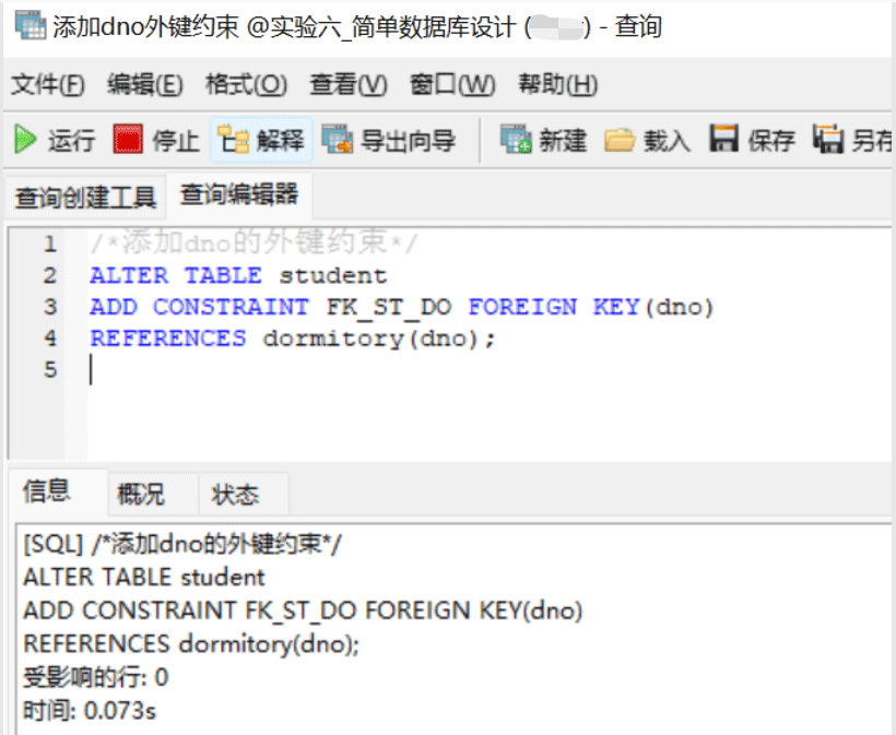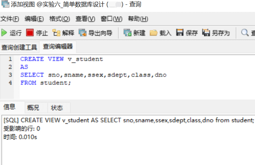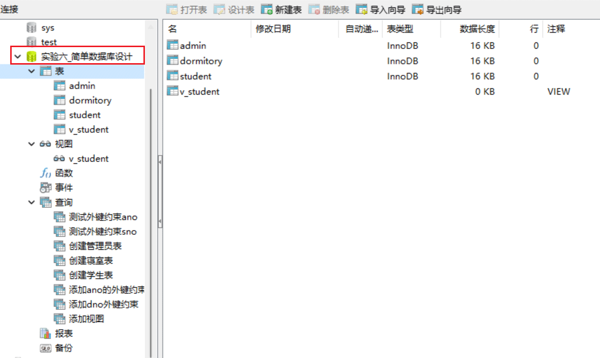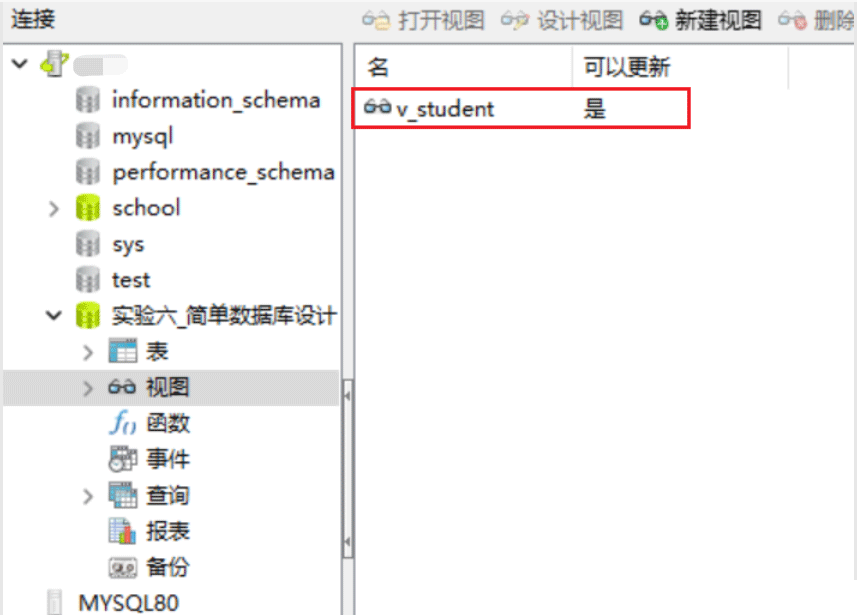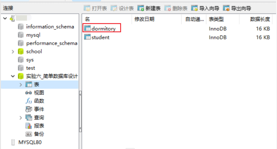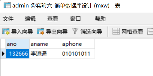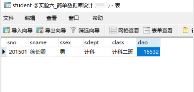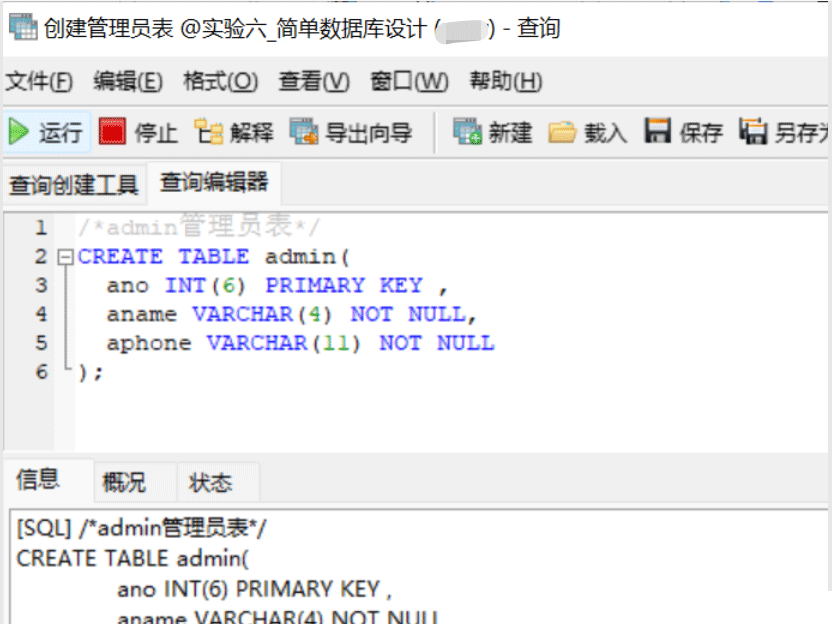 第一步:先创建一个数据库(实验六_简单数据库设计)