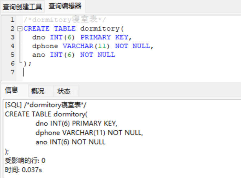 第二步:建立学生表 (student)、寝室表 (dormitory) 跟 管理员表 (admin)