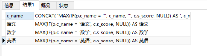 MAX(IF(p.c_name = '英语', p.s_score, NULL)) AS 英语
