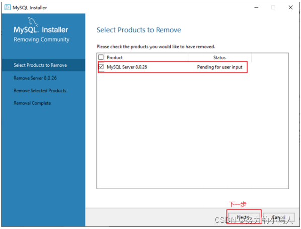 ③单击 Next,确认卸载