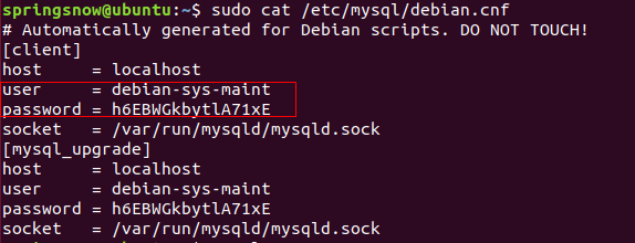 sudo cat /etc/mysql/debian.cnf