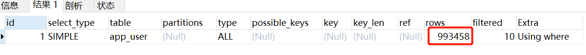 EXPLAIN SELECT * FROM `app_user` WHERE `name`='用户9999'