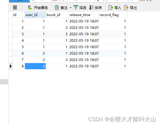 业务表 书( t_a_book ) 阅读历史记录表 (t_r_book_history) 用户表