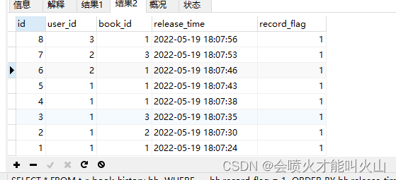 SELECT * FROM t_r_book_history bh WHERE bh.record_flag = 1 ORDER BY bh.release_time DESC LIMIT 10; // 用户信息 SELECT * FROM t_a_user u WHERE u.id IN (); // 图书信息 SELECT * FROM t_a_books b WHERE u.id IN ();