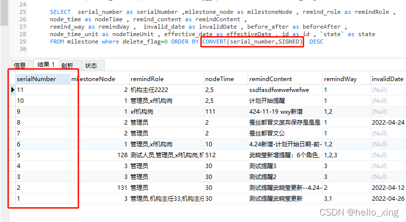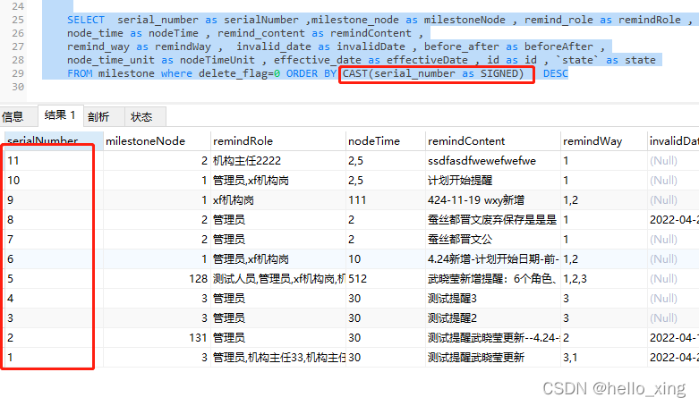 发现这个字段是varchar类型。不能直接排序