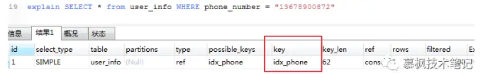 但是如果在按照 phone_number 字段为字符串类型进行查询的时候,Mysql 没有进行隐式的类型转换,所以最终还是走了索引。