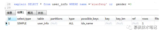 4、like 使用了 %X 模糊匹配