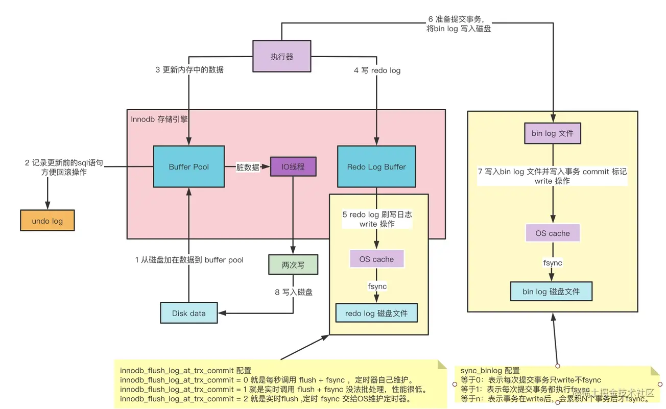 - 8 在 redo log 和 bin log 写完后,就可以进行事务提交。在数据进行写盘操作时, InnoDB 采用两次写的方式进行写数据。