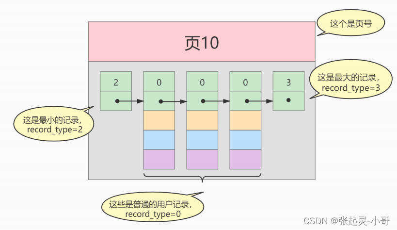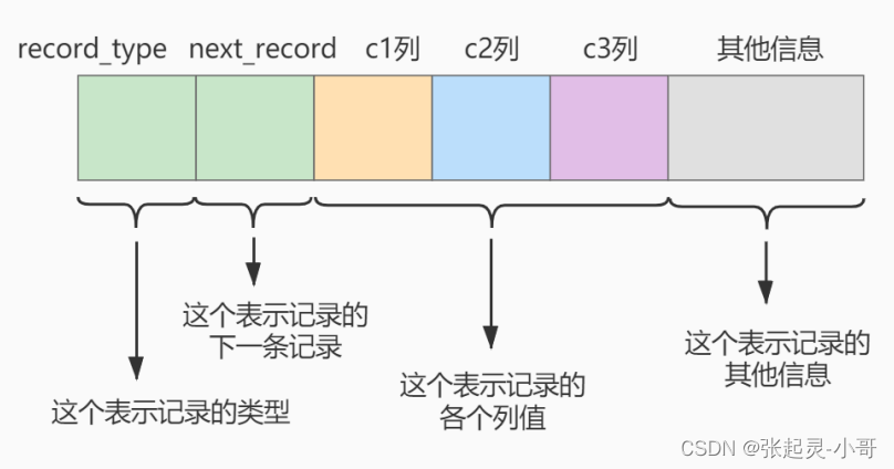 next_record :记录头信息的一项属性,表示下一条地址相对于本条记录的地址偏移量,我们用 箭头来表明下一条记录是谁。