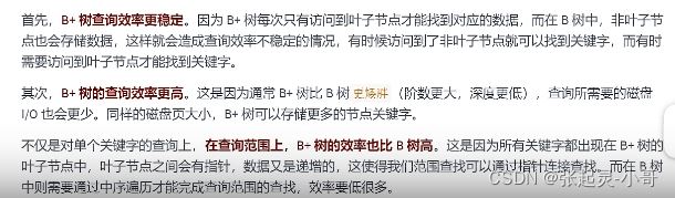 3. B+树 非叶子节点仅用于索引,不保存数据记录,跟记录有关的信息都放在叶子节点中;而 B 树中, 非叶子节点既保存索引,也保存数据记录 。