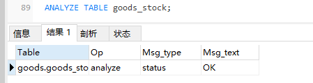 本语句用于分析和存储表的关键字分布,分析的结果将可以使得系统得到准确的统计信息,使得SQL能够生成正确的执行计划。如果用户感觉实际执行计划并不是预期的执行计划,执行一次分析表可能会解决问题。在分析期间,使用一个读取锁定对表进行锁定。这对于MyISAM, BDB和InnoDB表有作用。对于MyISAM表,本语句与使用myisamchk -a相当,下例中对goods_stock表做了表分析: