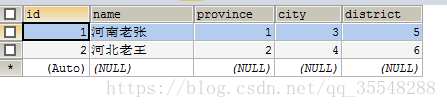 现在需要查询user表中的数据,并根据user表中省市区的值,在地址表中查询到对应的位置信息(name)并显示出来;