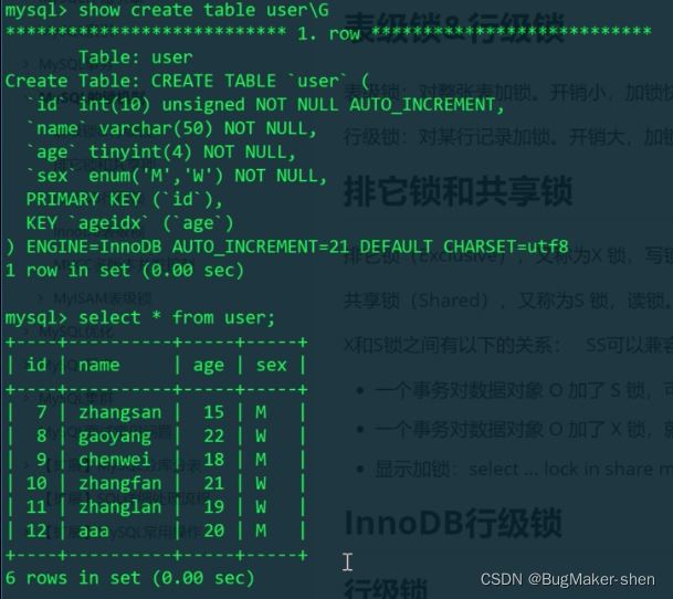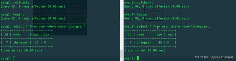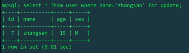 因为我们给name加上了索引,以上的select相当于给name为zhangsan的数据加上了行共享锁