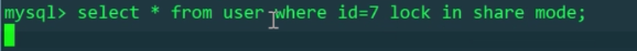 我们尝试给id=7的数据加上共享锁,还是阻塞了