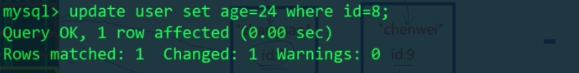 我们update id=8的数据,成功了。因为我们select的时候,只是给id=7的数据加上了行锁,我们操作id=8的数据当然可以成功