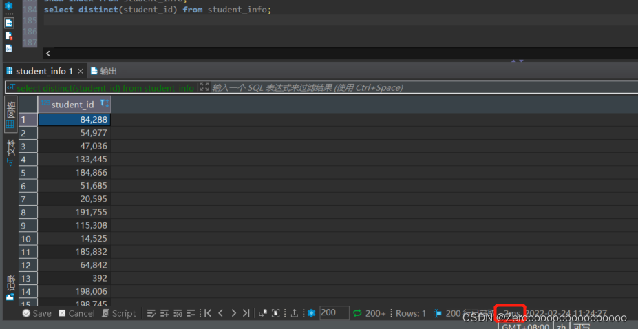 alter table student_info add index idx_sid(student_id); select distinct(student_id) from student_id;#花费0.1ms