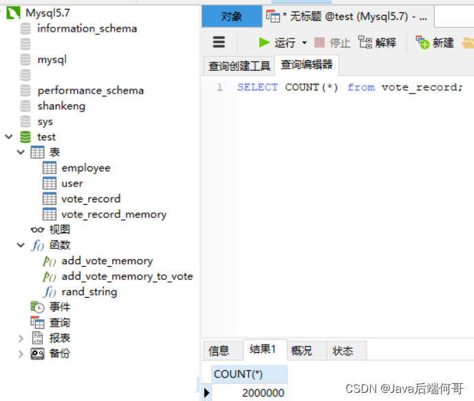 我执行了两次,查询vote_record表的行记录总数为两百万条: