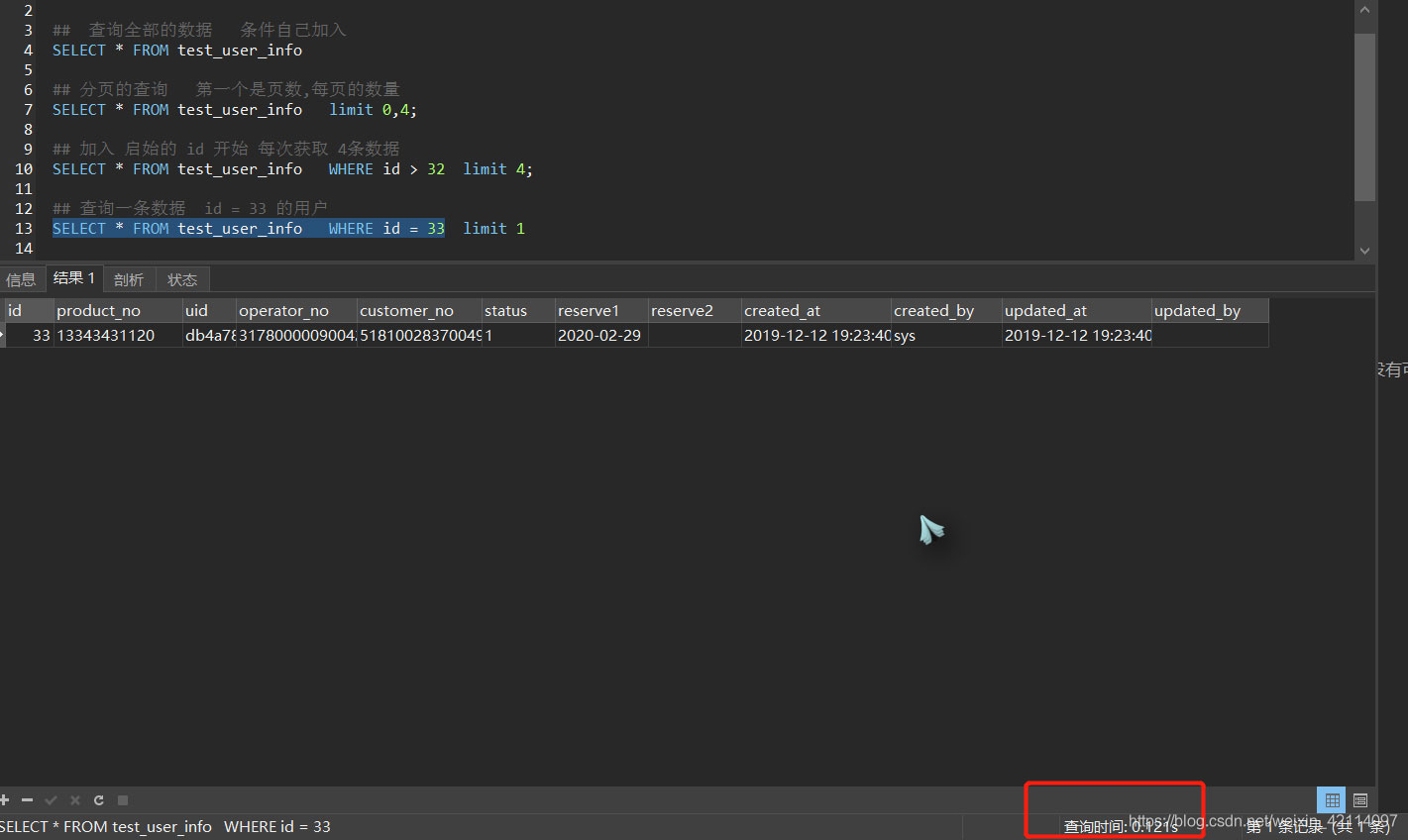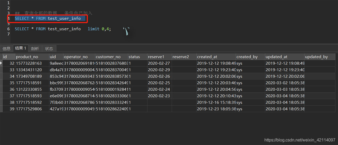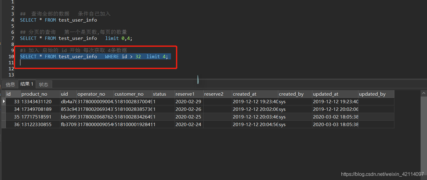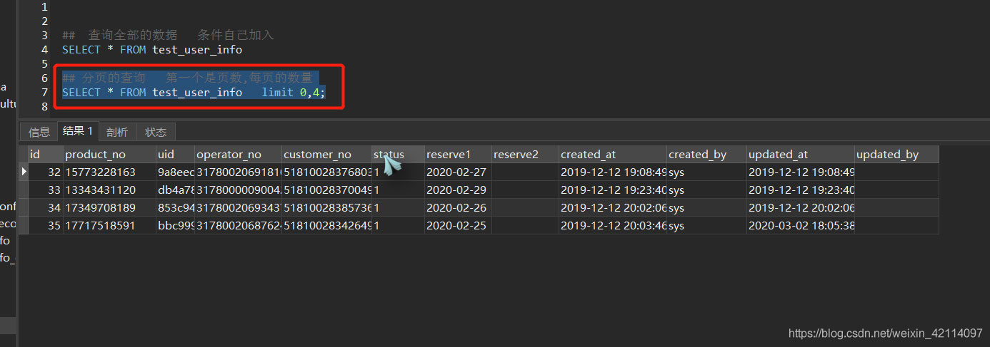 SELECT * FROM test_user_info limit 0,4;