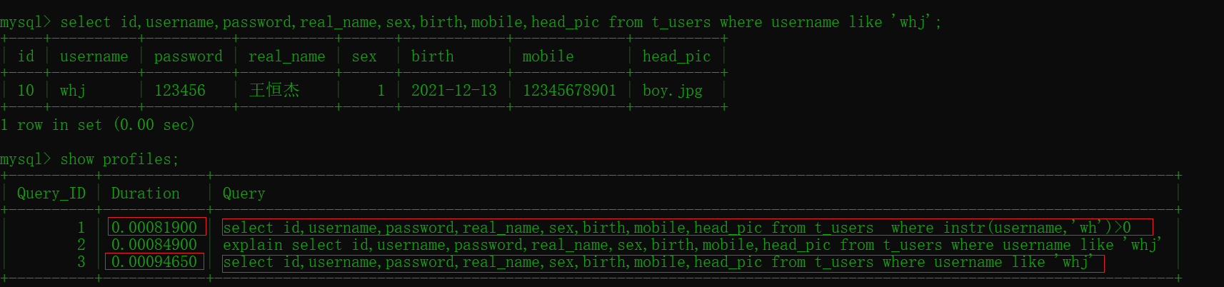 where username like 'whj'; # 0.00094650