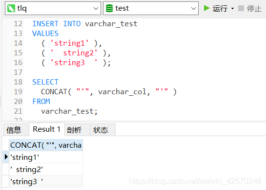当我们检索这些值的时候,会发现string3末尾的空格被截断了。