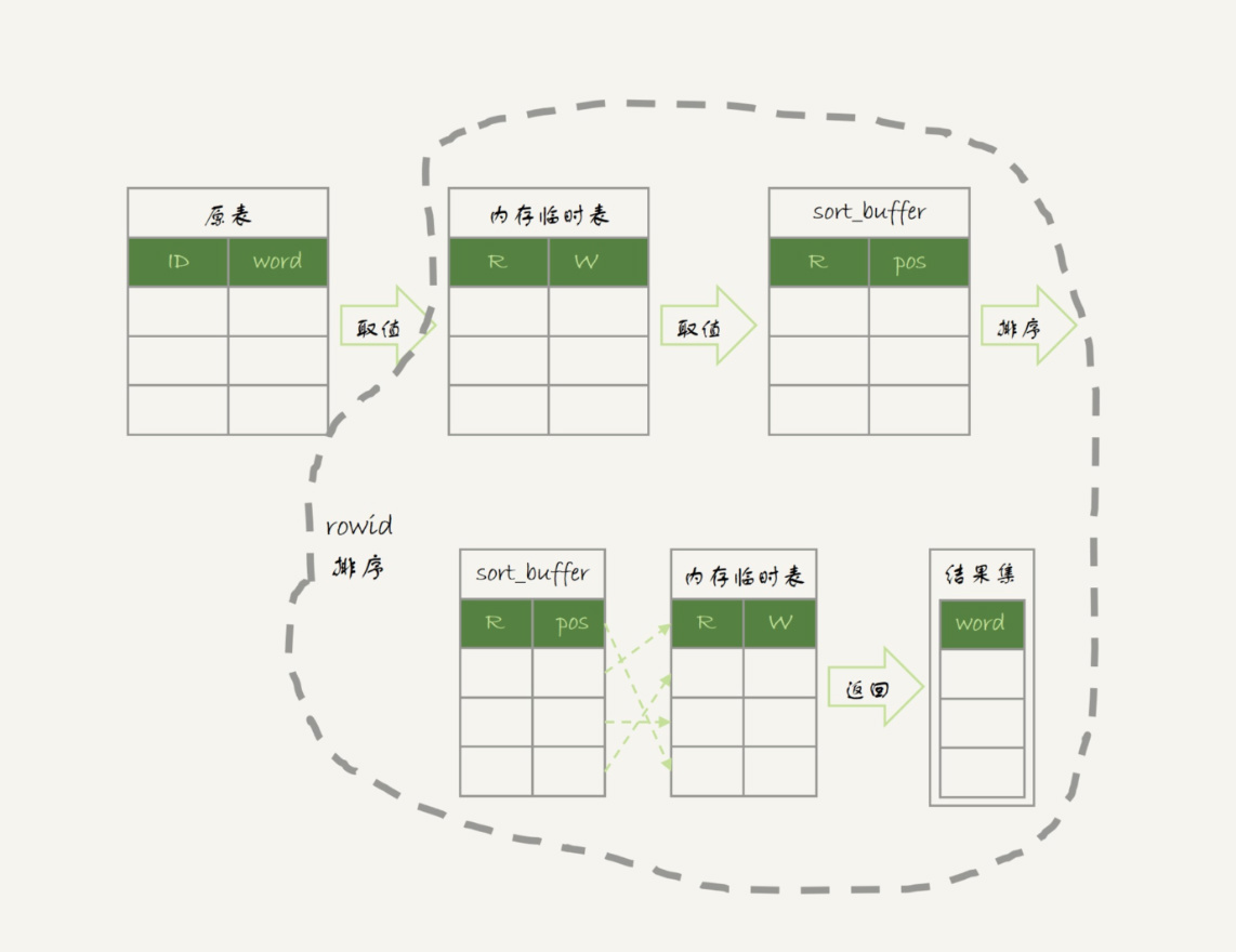 join_buffer是无序数组,sort_buffer是有序数组,临时表是二维表结构- 如果执行逻辑需要用到二维表特性,就会优先考虑使用临时表如果对