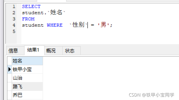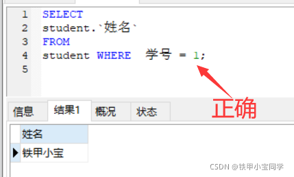 上述说的是在一般情况下是不用去加引号的,但是如果在不同的可视化数据库工具里,有些加了引号也是可以查询出来,不会去报错的,但是我们还是要以正确sql语句来写,避免以后出现一些bug。