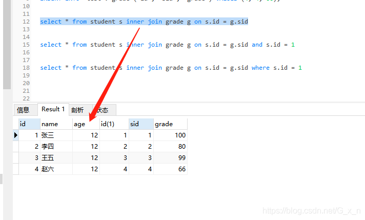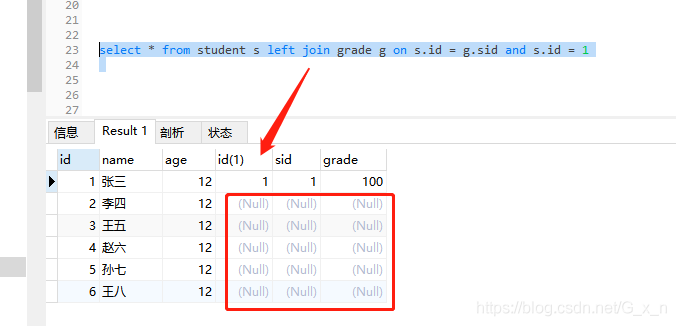 - 所有连接,使用where是对连接后符合条件的数据行进行再次的条件筛选,只保留符合条件的数据行;