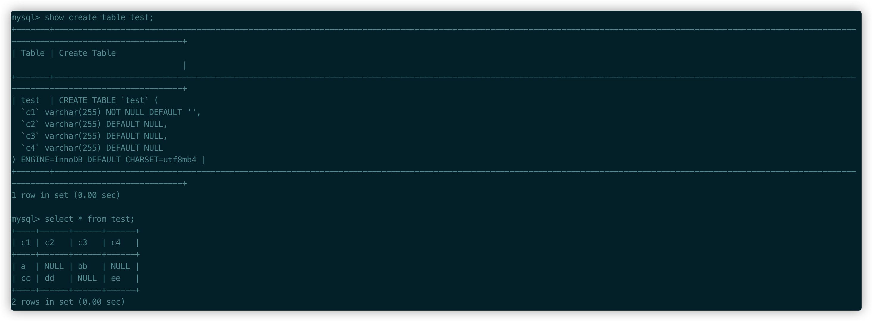 基于目前大部分的开发现状来说,我们都会把字段全部设置成NOT NULL并且给默认值的形式。