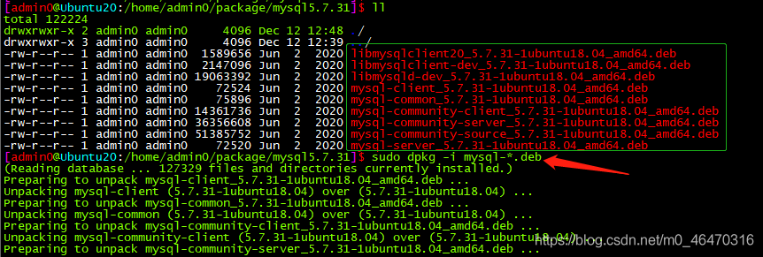 # 再次用dpkg进行安装 cd mysql5.7.31 sudo dpkg -i mysql-*.deb