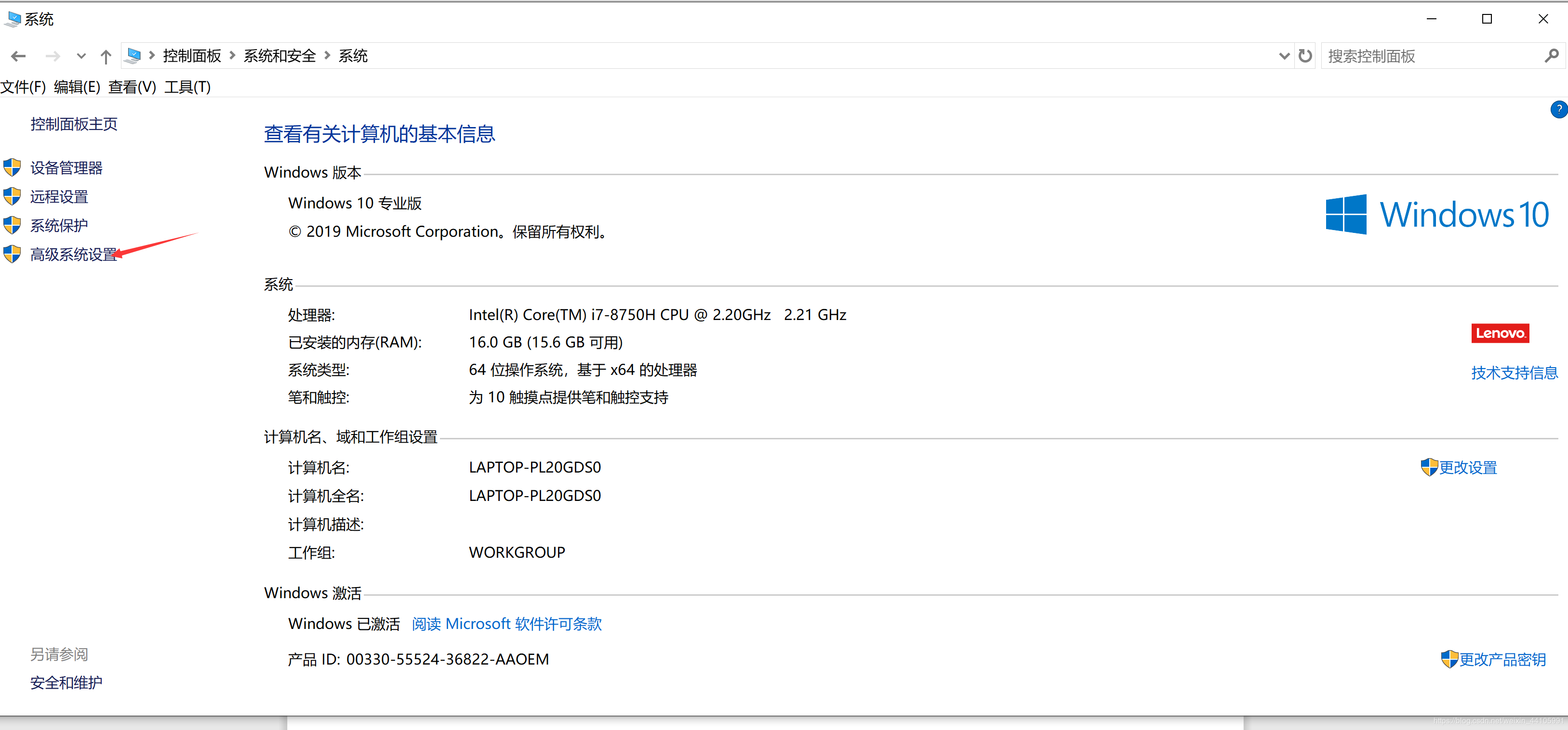3.2点击‘系统'之后,点击‘高级系统设置'