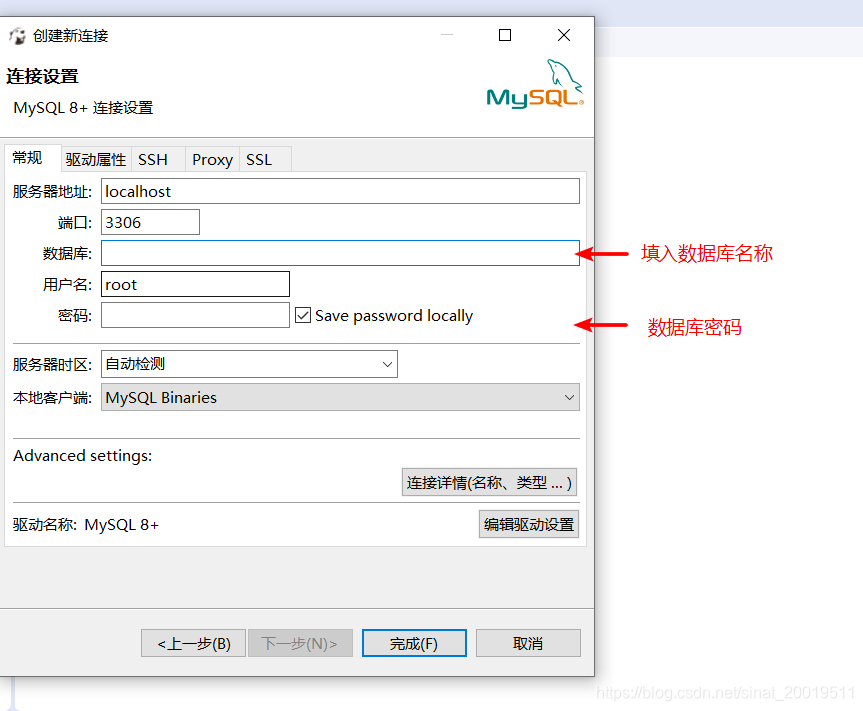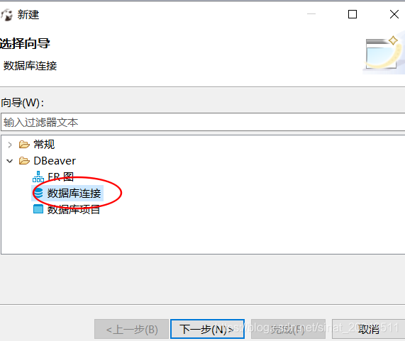 选择数据库 --》下一步 --》完成