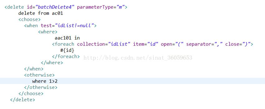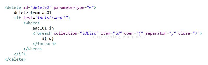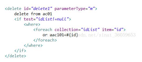 利用第一种删除语句在mybatis中的mapping.xml中进行拼接: