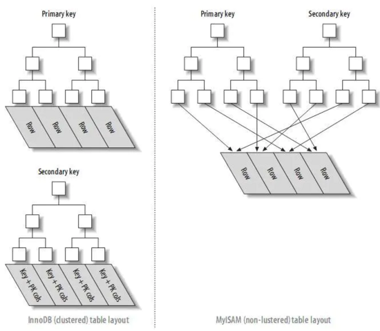 因为InnoDB支持聚簇索引,所以会与MyISAM上的索引实现方式有所区别。