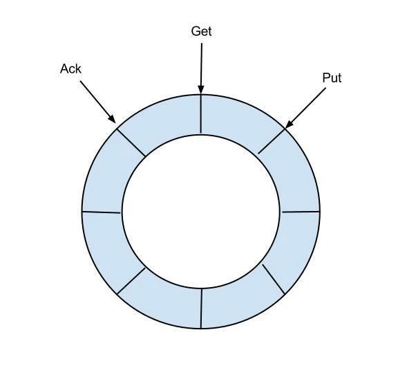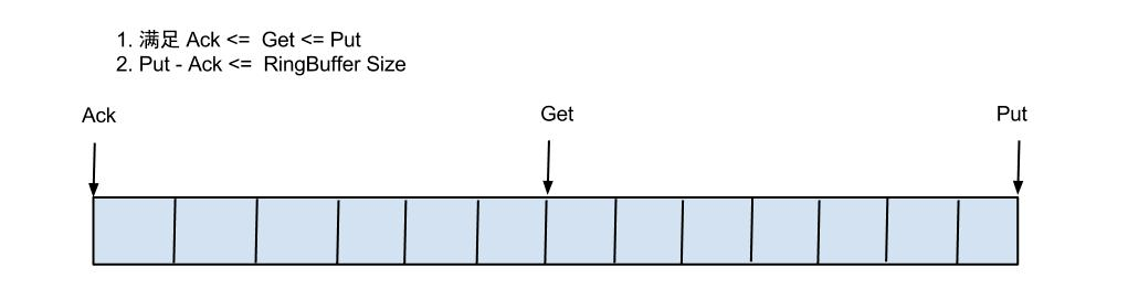 put/get/ack cursor用于递增,采用long型存储。三者之间的关系为put>=get>=ackbuffer的get操作,通过取余或者&操作。(&操作:cusor & (size - 1) , size需要为2的指数,效率比较高)