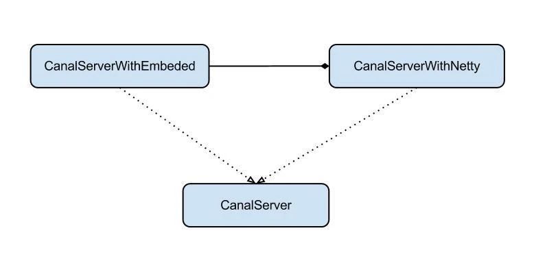server代表了一个Canal运行实例,为了方便组件化使用,特意抽象了Embeded(嵌入式)/Netty(网络访问)的两种实现。
