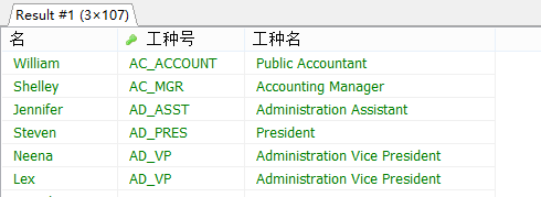 #案例2.查询员工名,工种号,工种名。对于两张表共有的字段需要加表名作限定不然会报错。 错误示例: SELECT first_name AS 名,employees.job_id AS 工种号,job_title AS 工种名 FROM employees,jobs WHERE employees.job_id = jobs.job_id;