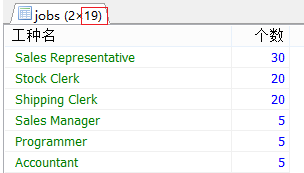 #6.可以加排序 #案例1:查询每个工种的工种名和员工的个数,并且按员工个数降序。 SELECT j.job_title AS 工种名,COUNT(employee_id) AS 个数 FROM employees AS e,jobs AS j WHERE e.job_id = j.job_id GROUP BY job_title ORDER BY 个数 DESC;