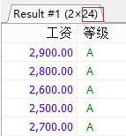 #案例2.查询员工的工资和工资级别,展示出A级别的员工。 SELECT salary AS 工资,grade_level AS 等级 FROM employees AS e,job_grades AS g WHERE salary BETWEEN g.lowest_sal AND g.highest_sal AND g.grade_level = 'A';