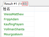 用ANY替代IN与上面同样的结果 SELECT CONCAT(last_name,first_name) AS 姓名 FROM employees WHERE department_id = ANY( SELECT DISTINCT department_id FROM departments WHERE location_id IN(1400,1700) );