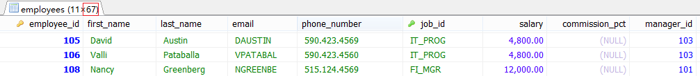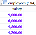 #案例2.返回其他工种中比job_id为IT_PROG部门任意一工资低的员工工号, # 姓名,job_id以及salary #①把IT_PROG部门中的工资查出来 SELECT DISTINCT salary FROM employees WHERE job_id='IT_PROG';
